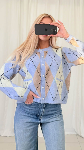 einheitsgröße: passend für gr. 34 bis 42 material: 48% viscose, 44% polyester, 8% wolle angesagtes argyle-muster...