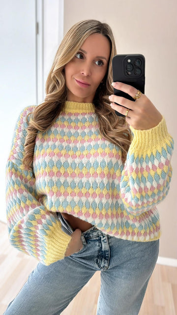 einheitsgröße: passend für gr. 34 bis 42 material: 65% baumwolle, 35% viskose angesagter grobstrick mit 3d...