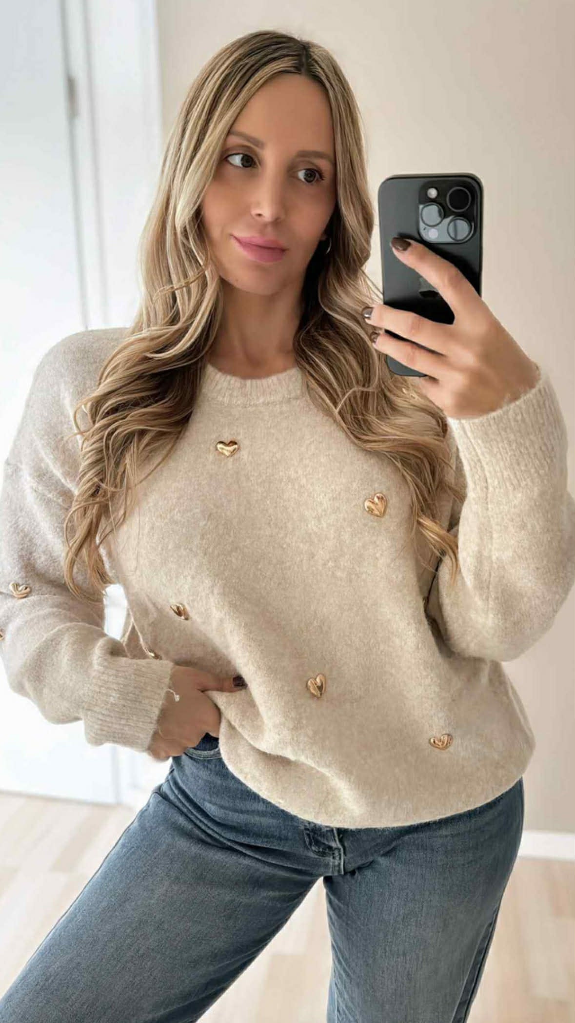 3D-HERZPULLI SANDY - CREME/GOLD