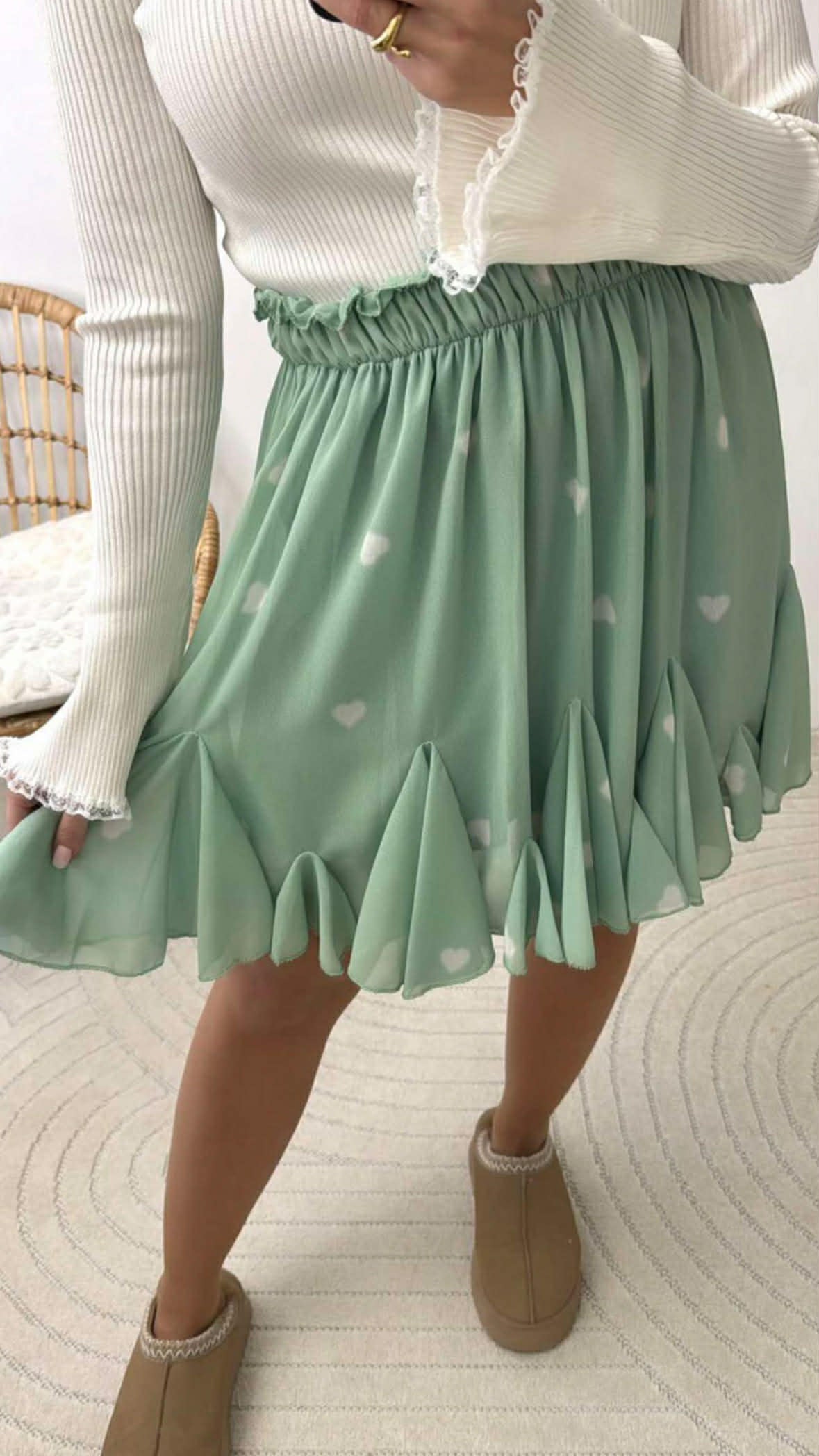 CHIFFONVOLANTROCK HERZI - MINT/WEISS