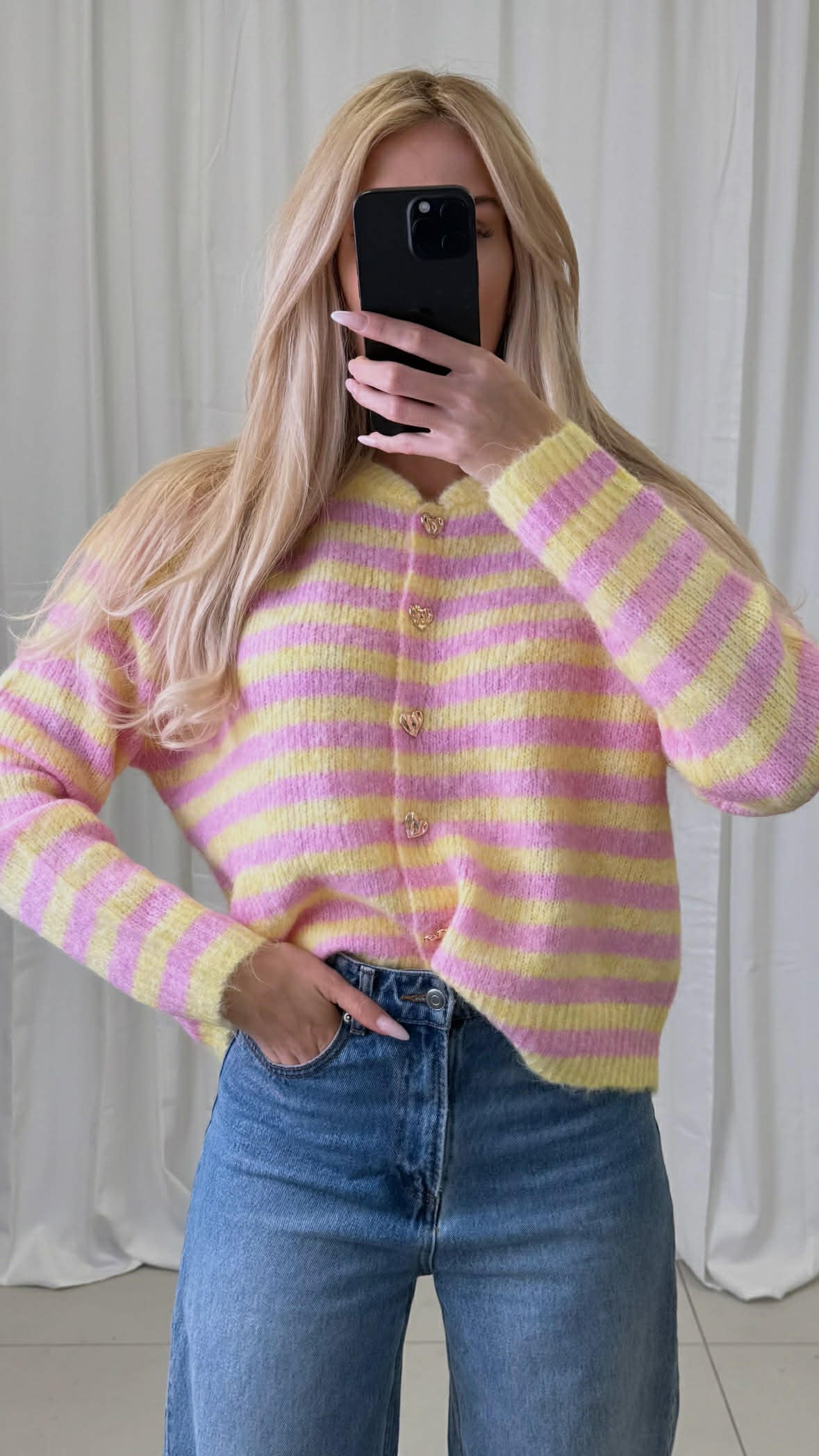 STREIFENCARDIGAN HEART - ROSA/HELLGELB